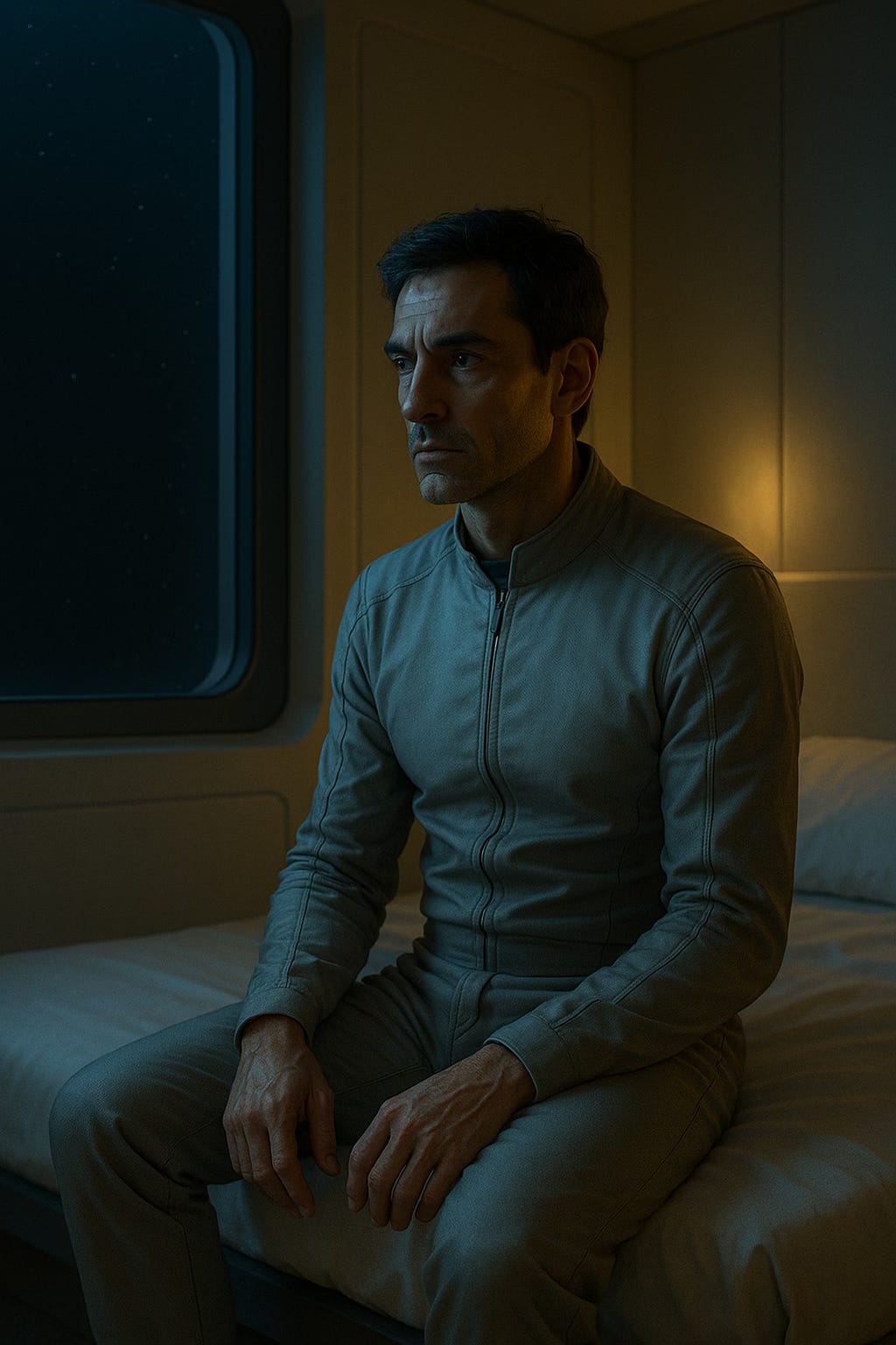 Nikos would awake to a synthetic sunrise that mimicked the golden light of Earth.